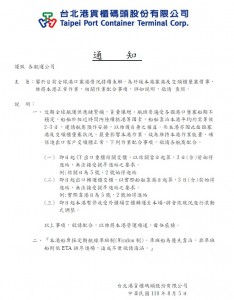 3.即日起本港暫停收受外櫃場空櫃轉運至本場,將會依現況進行滾動式調整。