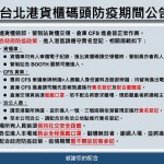 關於近日不斷接獲客戶詢問本公司疫情期間是否暫停作業,本公司特此聲明如下: 本公司並無發布任何暫停作業之訊息,船邊貨櫃裝卸、管制站貨櫃交領、倉庫CFS進出倉一切皆仍正常作業中,特此澄清如上,敬請各位客戶放心。