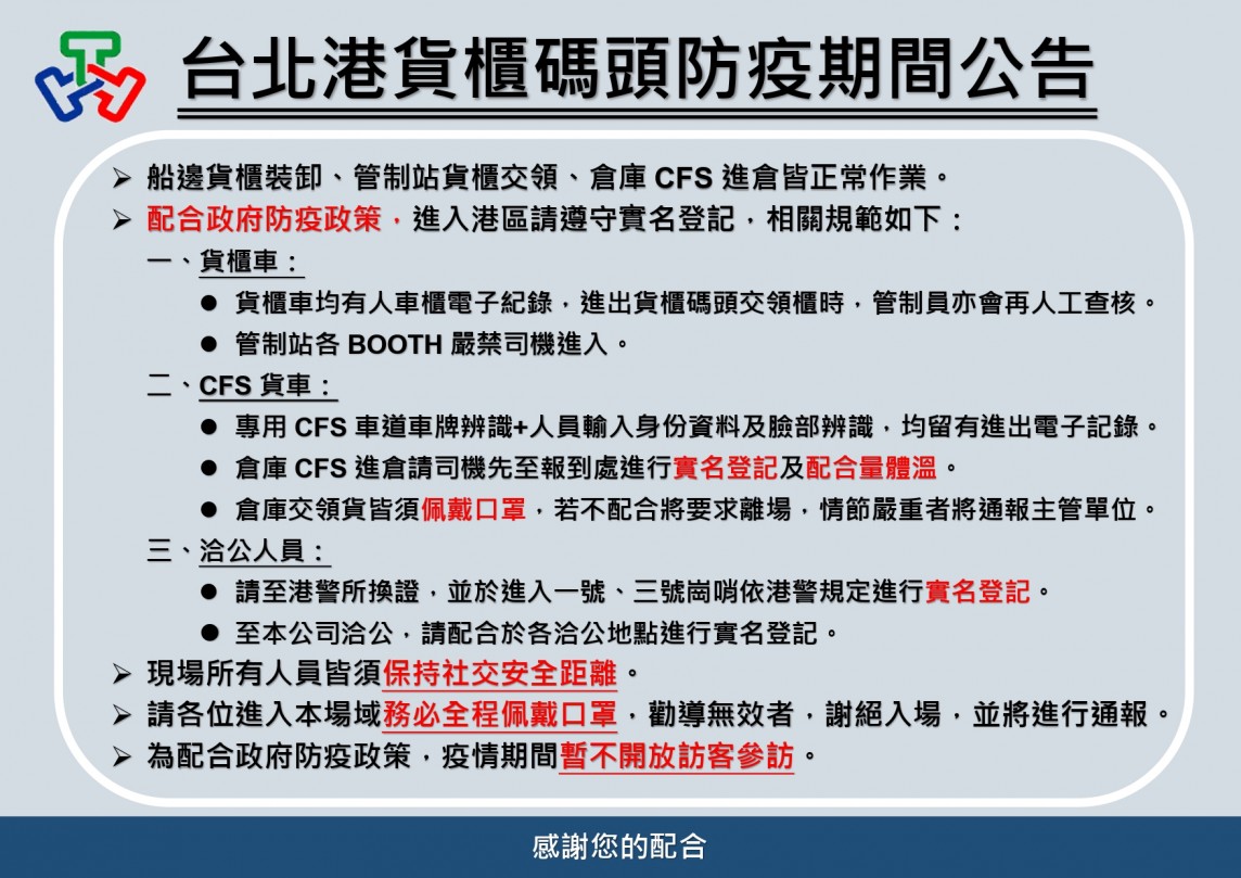 配合政府防疫政策,進入港區請遵守實名登記,相關規範如下: